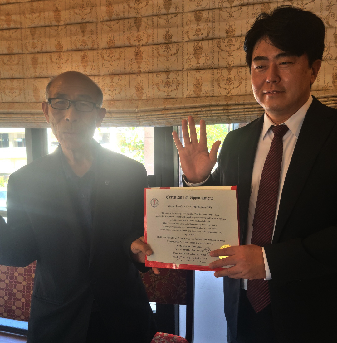 2022년 7월 26일 정오 JJ그램드호텔에서 "남가주교계연합 사마리아인 법률자문단" 조직되었다.
