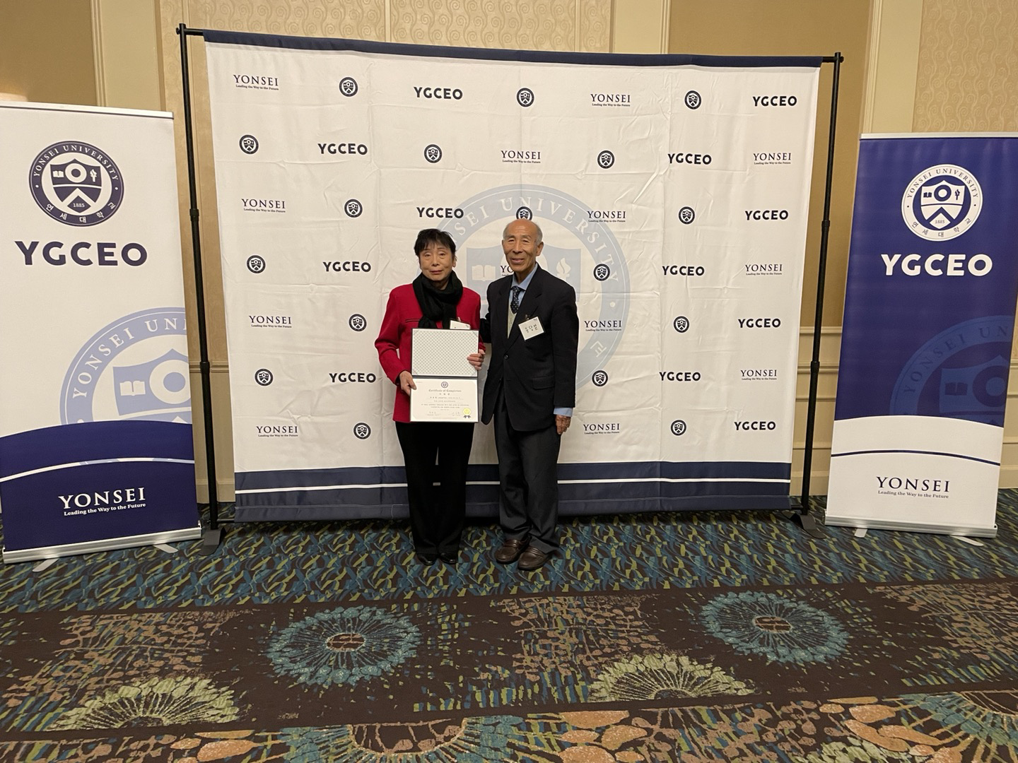 본지 발행인 류 당열 목사 부부, 연세대학 최고 경영자 수료 증서