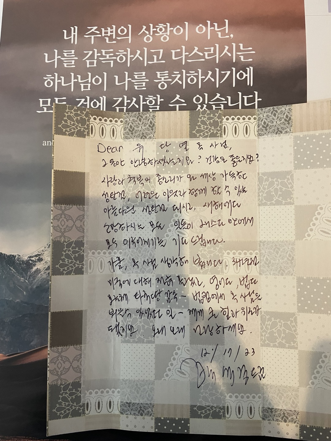 [미주교계뉴스] 무기수(종신형) 백 석경 성도가 미국 교도소에서 본지 발행인 류 당열 목사에게 2023년 12월 17일 옥중 서신을 보내